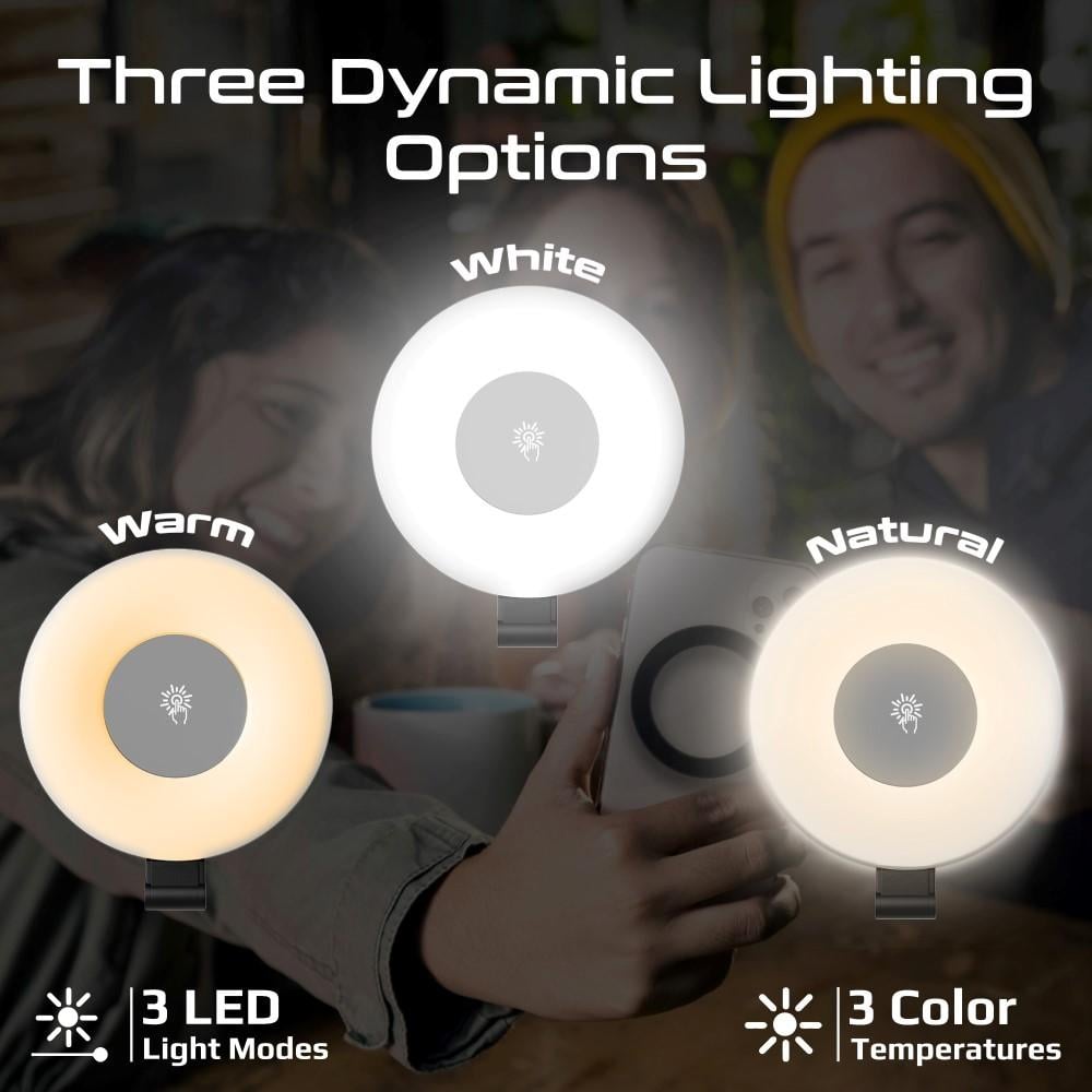 التصوير المحمول مع ضوء حلقة LED شديد الإضاءة من بروميت MagHalo، الذي يضمن صورًا وفيديوهات واضحة تمامًا. يعمل بسلاسة مع الهواتف الذكية وعصي السيلفي المغناطيسية، مما يعزز تجربة التصوير الخاصة بك أينما ذهبت.