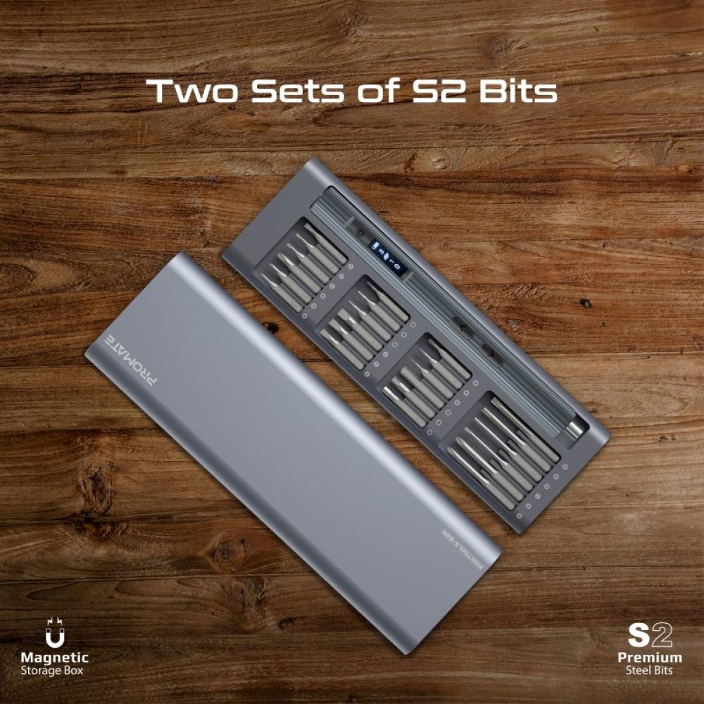 ProTools-62A عبارة عن مجموعة مفك براغي كهربائية لاسلكية مكونة من 62 قطعة تم تصميمها بملمس خفيف الوزن وغطاء ناعم غير لامع لتوفير التحكم الدقيق. مفك البراغي المذهل هذا مغناطيسي ويأتي مع 12 قطعة مغناطيسية H4*45 مم و36 قطعة فولاذية S2 مغناطيسية H4*45 مم عالية الجودة متينة وثابتة، مما يوفر لك الوقت. يحتوي ProTools-62A على مصباح LED مدمج يضيء مساحة العمل الخاصة بك ويجعل هذا الجهاز هو الخيار الأمثل للمشاريع الصغيرة. مع سرعة 200 دورة في الدقيقة وعزم دوران كهربائي يبلغ 0.25-0.35 نانومتر، يعد هذا رائعًا لإكمال المهام بشكل أسرع وبسهولة. تأتي المجموعة بأكملها في علبة أنيقة تحافظ على مفك البراغي والشاحن وجميع الملحقات منظمة وجاهزة للاستخدام.