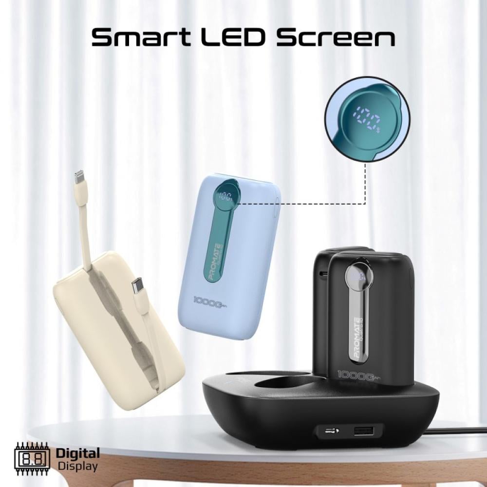 محطة شحن من بروميت تتكون من مجموعة بطاريات متنقلة 10000mAhوقاعدة شحن مغناطيسية 4 في 1 مع شحن سريع 30 واط Promate Quatro-10